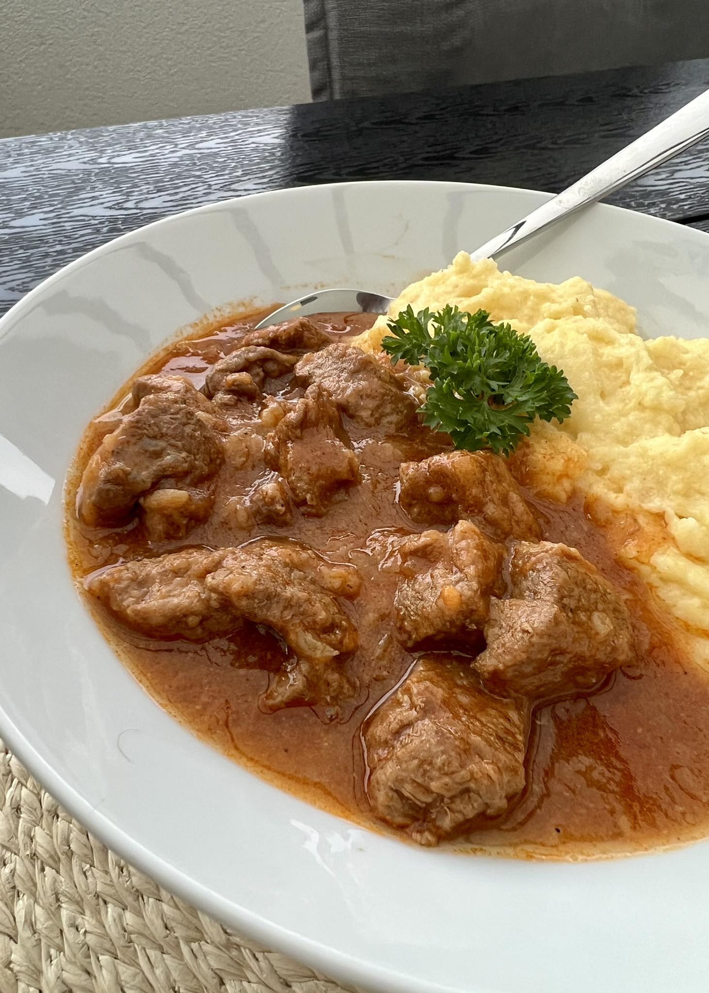 Meni vsake toliko zadiši res dober goveji golaž, tak čisto domač z mesom tako mehkim, da se topi v ustih in gosto omako, pa seveda polenta zraven!